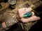 Big San Pedro Variscite oval ring. Set in sterling & fine silver.